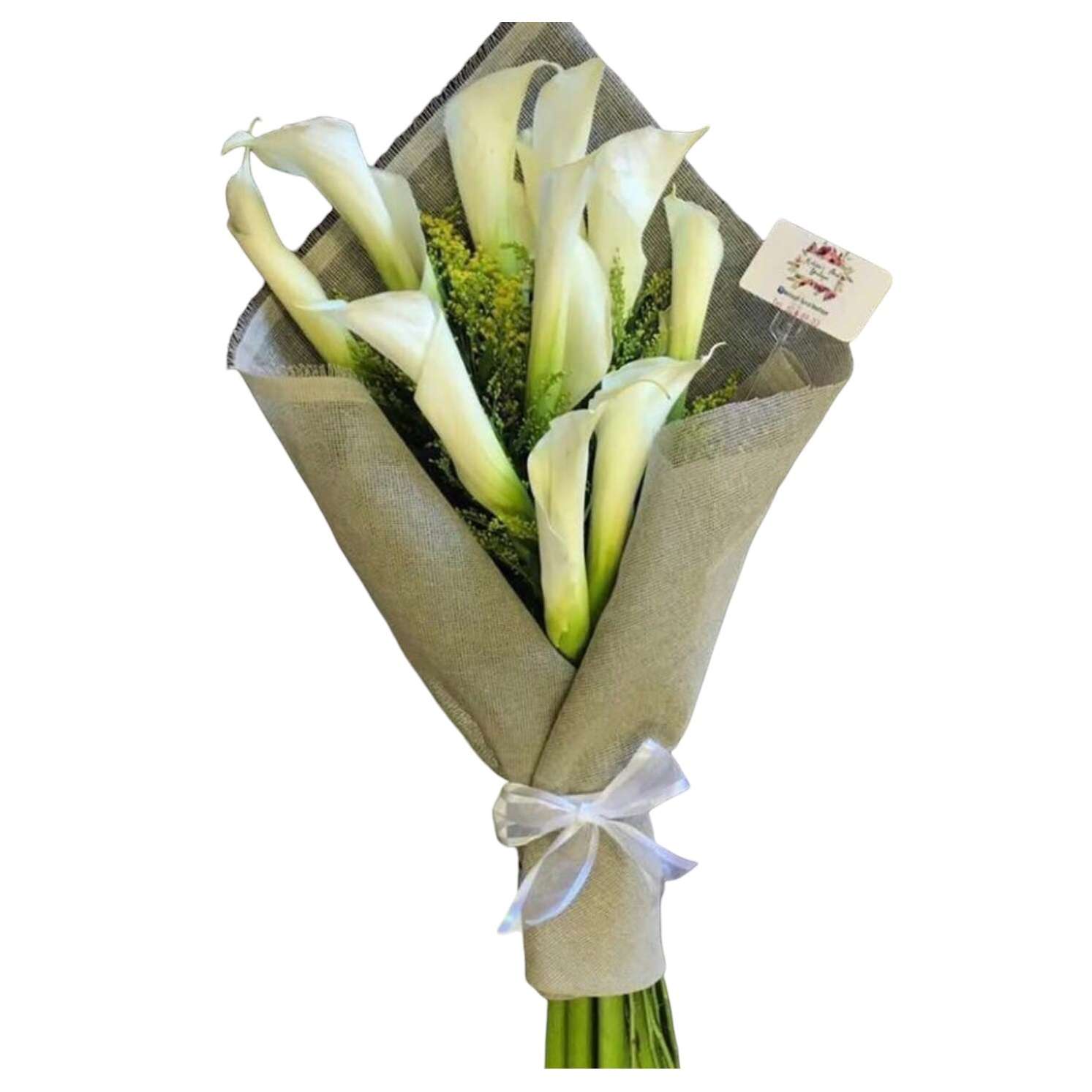 Bouquet de cartuchos acompañado de follaje variado, papel coreano, tarjeta y moño decorativo. Precio varía según la cantidad de flores que elija.