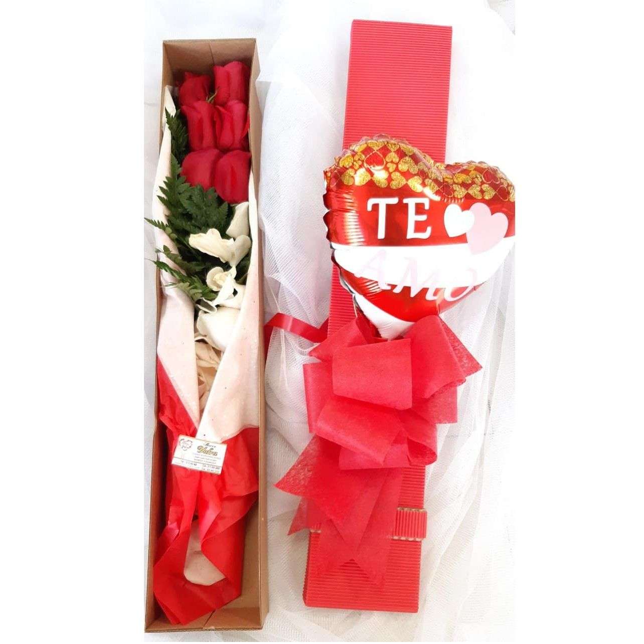 Caja artesanal con diferente cantidad de rosas y globo metalizado de 9 pulgadas para la ocasión. Precio varía según la cantidad de flores que elija.