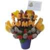 Oso de chocolate relleno de dulces entre chocolates y gomas, acompañado de 9 fresas con chocolate. Se entrega con martillo, tarjeta personalizada, moño y caja con ventana en acetato. Elige a tu gusto el color!
