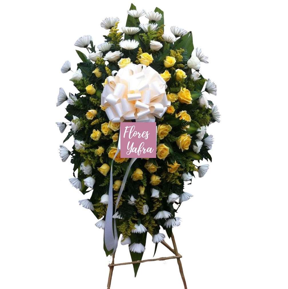 Pedestal en rosas del color de su elección y cremones con follaje variado